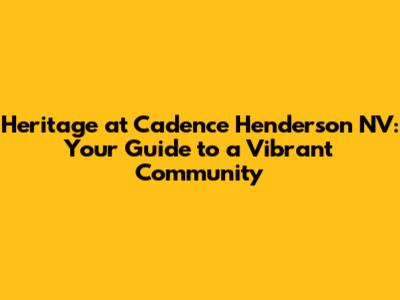 Hey guys! Are you thinking about moving to a new place that's got it all? Well, let's dive into Heritage at Cadence in Henderson, Nevada. This isn't just another housing development; it's a vibrant community designed for folks who want an active and engaging lifestyle. So, buckle up, and let's explore what makes Heritage at Cadence such a fantastic place to call home!