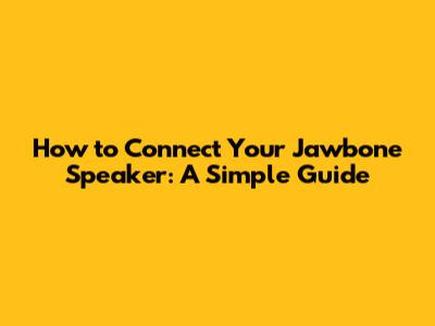 How To Connect Your Jawbone Speaker: A Simple Guide
