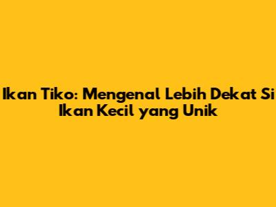Ikan Tiko: Mengenal Lebih Dekat Si Ikan Kecil Yang Unik