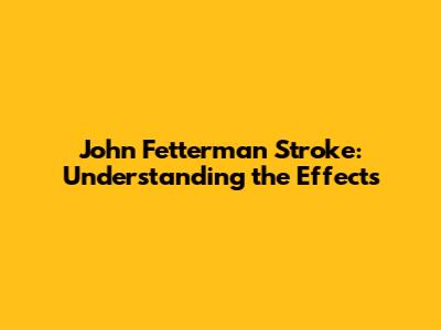 John Fetterman Stroke: Understanding The Effects