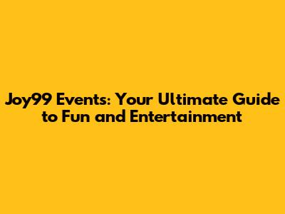 Joy99 Events: Your Ultimate Guide To Fun And Entertainment