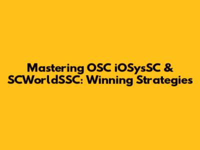 Mastering OSC IOSysSC & SCWorldSSC: Winning Strategies