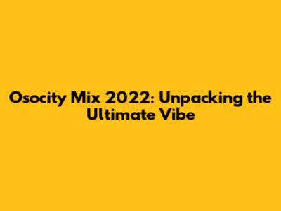 Osocity Mix 2022: Unpacking The Ultimate Vibe