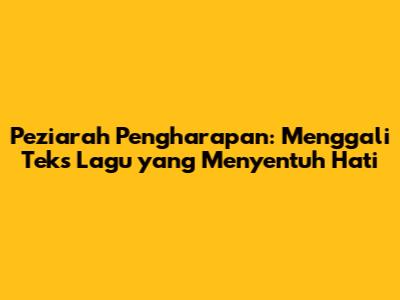 Peziarah Pengharapan: Lirik, Makna, Dan Refleksi Mendalam