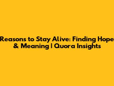 Reasons To Stay Alive: Finding Hope & Meaning | Quora Insights