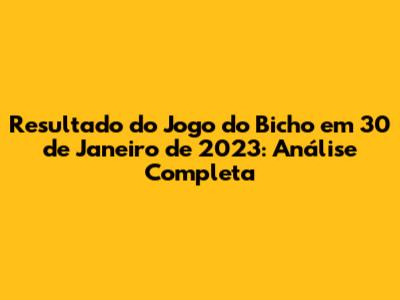 Resultado Do Jogo Do Bicho: 30 De Janeiro De 2023