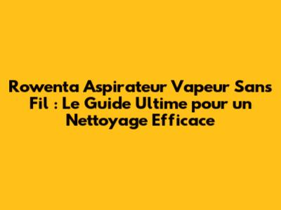 Rowenta Aspirateur Vapeur Sans Fil : Guide Complet