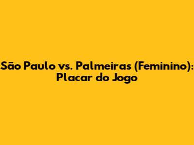 São Paulo Vs. Palmeiras (Feminino): Placar Do Jogo