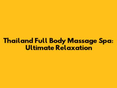 Thailand Full Body Massage Spa: Ultimate Relaxation