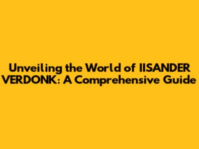 Unveiling The World Of IISANDER VERDONK: A Comprehensive Guide