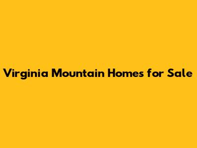 Virginia Mountain Homes For Sale