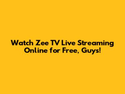 Watch Zee TV Live Streaming Online For Free